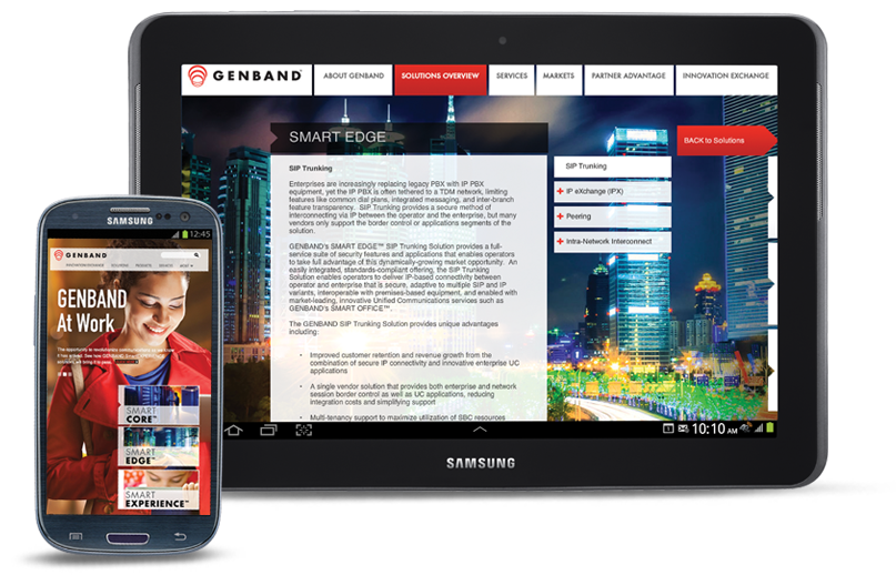 An advertising campaign targeted industry-specific and consumer stakeholders, while a custom, refreshable sales app let GENBAND innovators “walk the walk” during in-person sales opportunities and presentations. A click-through rate of twice the industry average quickly validated the differentiation approach and led to over two million impressions in what is arguably a niche industry.